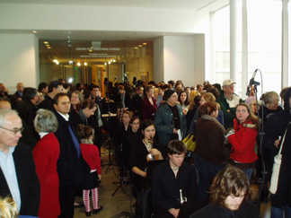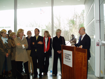 The Center for Curatorial Studies and Art in Contemporary Culture at Bard College in Annandale-on-Hudson, NY, opened the Hessel Museum with great flair, and well over 600 people attended the ribbon-cutting. The Center is an exhibition and research center dedicated to the study of art and exhibition practices from the 1960's to the present. It was created in 1990 by Marieluise Hessel and Richard Black, and has had a graduate program in curatorial studies since 1994. Marieluise Hessel has made a permanent loan of her collection and given more than 14,000 art publications to the library. She and several others provided funds for this 17,000 sq. ft. building, which will have rotating exhibitions curated from her collection. At the opening celebration, Leon Botstein, President of Bard College, acknowledged the public's support and emphasized the point that Bard is redefining what colleges do. “It's not the football team but the arts that is the public face of this college”. He also acknowledged the great trust that was given to Bard, a college known for taking risks with their institutions and programming. Mariel spoke about how proud she was to be in the forefront of what's happened in art over the past 50 years, and that her life has been enriched for her involvement with the center and the college. After the ribbon was cut, a group of Bard musicians played one note at a time and as they progressed thru the musical piece, we progressed into the galleries. Wrestle is the inaugural exhibition and has over 150 works from the collection. For more information go to the website www.bard.edu.