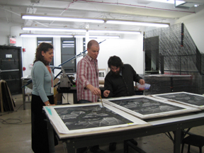 NY working along side Executive Director Ann Kalmbach and studio intern Caitlin Wheeler silk-screening the new ART TIMES