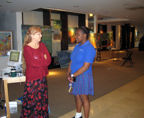 It was probably in the early 70’s when I was last in Coconut Grove, a time of wandering and hanging out with free spirits (now I hang out with artists who are also free spirits!). Michael J. Brody of TALEO Arts in Woodstock, NY, invited me to come to his winter home and say hello and meet up with artists Fred Hunt and AnnaMaria Windisch-Hunt whom I had met at TALEO and wrote about in the Nov ’07 issue of ART TIMES. TALEO, according to Michael, is derived from the ancient Nomadic expression for “Creativity” and is housed in a former Trinity Baptist Church now a multi-use studio for Meditation, Music, Art, Drama and Film with 2 theater spaces, a full kitchen, office space, and wonderful mountain views. When I saw AnnaMaria this past summer she also encouraged me to visit and promised a tour of The Grove. Quoting from the Grove’s website: “Coconut Grove is best known for its quietly breathtaking natural beauty, a lush green landscape bordered by the shimmering blue waters of Biscayne Bay. From its beginnings in the late 1800’s, this magical place has attracted tycoons, artists, writers, and musicians galore, and—truth be told—more than its share of kooks, eccentrics, and free spirits.” Sounds like a lot of places artists end up! I met AnnaMarie at her gallery, Windisch-Hunt Fine Arts on Grand Avenue where she shows a dozen or so artists’ work, has a gift shop, and rents out some wall space to artists. We began the tour and as we walked I learned about the evolving arts community. In the 60’s there may have been 20 galleries; now just 8 and some artist studios as well as many high-end clothing, jewelry shops, and restaurants. About 15 years ago AnnaMaria began a gallery that then became a coop and is now The Heart of the Grove, a group of about 30 members that came out of the One Ear Society, an organization that continues to find opportunities for artists. www.oneearsociety.blogspot.com. We continued on our way to Focaccia, a delightful bistro which features, along with fine food and an excellent cup of coffee, “Breakfast with the Artist”, the Grove’s answer to what is often the overdone Art Stroll, 2nd Friday, 3rd Sunday etc. which seems now to be in every city. Another innovation I came across is Art