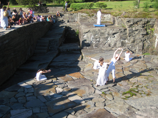 amongst earth sculpture of bluestone. The choreography by Livia Vanaver was specific to the site. People on blankets with picnics were