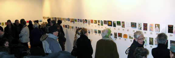 I visited the Art Society of Kingston (ASK), now in their 12th year as an organization with nearly 600 members. They present not only monthly exhibitions, but offer classes and workshops in songwriting, literary arts, drumming, swing dance, and acting. ASK is housed in the former Kingston Police Training Academy on lower Broadway and the spaciousness of the building is allowing for all kinds of activities including a monthly pot luck so that artists and supporters of the arts can meet, network, or have a social evening. Just past the entryway is a gift shop with a variety of items as well as information, and from there 2 large rooms follow where Holiday Cheers, the Open Members Show of small works were hung. Sharon Vairamides won the Sheila Bloodgood Memorial Award for her watercolor Forelle Pear & Lady Apple. Congratulations Sharon! The work was varied, affordably priced (12 paintings were sold by the 2nd week of the show) and generally quite good. Currently there is one paid position, that of Vindora Wixom, Executive Director. ASK has obtained a NYSCA grant and additional donations are coming to the organization for programs, building repairs and renovations. They are hoping to expand the staff with 2 part-time people: one to take care of the building, another for communications. After telling me about the current activities, Vindora took me upstairs where a 99 seat auditorium is being built. Also upstairs will be bathrooms and a room for classes and workshops. What a great job they are doing. The hard working and dedicated board, along with Vindora, have brought this group to a fully functioning members organization that continues to grow, to prosper and support the arts of the Hudson Valley. Each month they create (with the publishing support of Kingston’s daily newspaper the, Daily Freeman) ArtWorks, a small newspaper that has some member news, show announcements and most importantly, a map and guide for galleries and art venues in Kingston. A great help during first Saturday gallery stroll. For more information go online at www.ASKforArts.org or call them at 845-338-0331. Their next exhibition opening January 5 is Engrams curated by Barbara L. Bachner with work by Martha Ellen Hughes, Renée S. Englander, Carol Pepper-Cooper and Elizabeth Winchester. Jennifer Axinn-Weiss will have work in the lounge gallery.