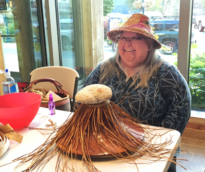 ![]() Della Cheney is a Tlingit & Haida artist. I met her at Sealaska Heritage where she was giving a demonstration of weaving traditional hats. She is a delightful woman who teaches weaving, writes and gives talks about the Native American experience and culture. |