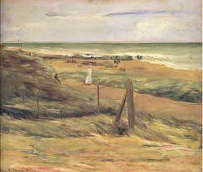 After all, this was a man who until recently was being sought out by Berlin’s upper elite — including President Paul von Hindenburg — to have their portrait painted by his hand. So far had he fallen out of favor in his later years, however, that it was only one of his upper-class sitters, Dr. Ferdinand Sauerbruch (along with the artist Käthe Kollwitz), that represented the non-Jewish members of Berlin’s society attending Liebermann’s funeral in 1935. Whatever he was trying to accomplish artistically, his moving from realism was to many an almost deliberate throwing down of a gauntlet in the face of a society increasingly growing in rigid conservatism. To the uncultured Nazi thug, it was already enough that he was a Jew, an Ausländer; must he also join the abominable ranks of what appeared to many as an untalented gang of would-be artists? One cannot second-guess an artist’s intentions by either studying his life or his work — and even when taken in combination, there are simply too many variables that go into an individual’s aesthetic development to come away with any definite conclusions as to why this or that tack had been taken. Indeed, it is the rare artist capable of clearly stating or understanding why particular paths are chosen during an aesthetic journey. That Liebermann chose to move from the clarity of his early vision to one of suggestive ambiguity may have been the result of less aesthetic than of psychological impulses. It is true that he eventually pulled back from allowing his art to completely disintegrate into pure abstraction, that he ultimately rejected the expressionist movement, but the damage to his own aesthetic vision had already been done.
