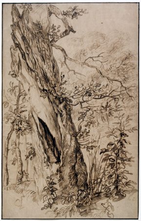 Cat. No. 80) and “Old Tree Trunk in Front of a Forest” (Brown Ink on Oriental