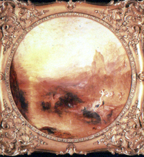 This is perhaps not what everyone might find pleasing to accept and indeed, as we have seen with the Reverend Eagle, Turners "impressions" of inchoate matter and energy are not to everyones tastes. They may in fact prove unsettling to those of fastidious sensibilities who seek rather to find stability and definition in their artistic views of the world. For these, the exhibit may offer some respite since not all of the paintings represented are for want of a better term "abstract." For that matter, not all are of the sea but are of skies, and mountains and mythology (see, e.g., "Goldau," "Brunnen, from the Lake of Lucerne," and "Glaucus and Scylla").