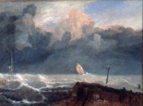 An "impressionist" before that term became current and before its French manifestation became popular, J.M.W. Turner gradually moved from academic "realism" in his early years to a style that, in England, could only be termed "experimental" as opposed to "painterly" or, more specifically, "academically" sound. Not surprising, perhaps, since even the increasingly touted and wildly acclaimed French product on the continent took a long time to find sympathetic eyes in the Island Kingdom. As the Reverend Eagle proclaimed when they were first exhibited at the Royal Academy Exhibition in 1840, the subjects of Turners paintings, "Slave Ship" and "Rockets and Blue Light" (the latter, a treasure of the Clarks permanent collection and included in the present exhibition), were, insofar as comprehensibility, "past the imagination of man to find out " and, in the end, not worth the bother since it was "too hard a task to account for anything in this unaccountable performance." In brief, Turners unorthodox brushwork and use of color just didnt make sense to the practical eye of the convention-bound British gallery-goer.