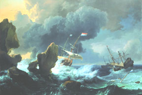 ![]() "Ships in Distress off a Rocky Coast" 1667 Oil on Canvas by Ludolf Backhuysen |