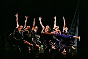 ![]() Alessanda Prosperi as 'Leader of the Chorus' and The Martha Graham Dance Company in NIGHT JOURNEY (Photo Copyright Nan Melville) |