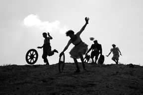 between speeding in cars, stillness and clambering around a huge scrap