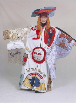 chorus member wearing a miniature costume from the play for FIDDLER ON