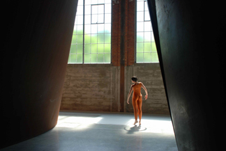 DAWN LILLE DIA BEACON, HOUSED in an almost 300,000-square-foot former factory, was opened in 2003 by the Dia Art Foundation as a home for their permanent art collection, which includes works from the 1960’s to the present. Over two weekends in June and July the Merce Cunningham Dance Company was in residence and presented performances in the galleries. Prior to the performance this newcomer to the museum spent time strolling through the endless space, with its all-encompassing natural light. The length and width invite the visitor to breathe, to feel the vast rooms expanding into infinity and to look at the art so graciously displayed in a completely different and personal way. The question of how an artist of any kind uses space — inspired by it, adapting to it, fighting it, encompassing it, exploring it or altering it – is key to understanding that artist. In this sense the museum visit was a perfect prologue to a Merce Cunningham dance concert. Cunningham, the fearless, steadfast, determined, incessantly curious, technologically literate and often iconoclastic artist, was at one time the enfant terrible of the dance avant-garde, then became one of those against whom the early post modernists rebelled. Undeterred, he continued his exploration of movement, where the main elements that have always interested him are time and space and the interrelationship of the two. With his use of chance determination, in which the order of a dance or the components of a phrase are chosen according to random methods such as the tossing of a coin, and much influenced by his long time association with the composer John Cage, he has aimed to choreograph works in which the viewer chooses which of the many paths of movement to observe. For him, any area of a space is as important as any other and any movement can follow any other movement. Additionally, although he deems music, costumes and décor important to the final dance, he also believes that each is an autonomous creation in itself. Hence they often do not come together until the last moment, sometimes at dress rehearsal. In the music, what is essential is adherence to an exact time period. Since Cage believed that any sound could be music and Cunningham that any movement can be dance, it is not difficult to imagine their association with contemporary artists, many of whom designed for the company. During Robert Rauschenberg’s fourteen-year association with Cunningham he was on tour with them as stage manager when he received word that he had won the Venice Biennial. The company has dedicated Merce’s 90th Birthday Season to the life of Robert Rauschenberg. Billed as a site-specific Beacon event, the performance took place in the Richard Serra gallery, which is occupied by four large steel structures called “Torqued Ellipses.” All the size of a room, with walls tilting in different directions, they are placed in a long rectangular space filled with light. At each end a stage area was defined with a large steel wall as a backdrop. In front about 16 stools were set. Behind the stools the glass doors were open, making the gardens at either end part of the space – heard and felt by the seated audience and seen by the dancers and the many standing and sitting along the sides. In addition to these performing areas a space in between sculptures two and three was occupied by dancers, who traveled between the three performance areas. The audience was encouraged to explore the Serra pieces prior to the performance by walking into and around them and to move freely from place to place once it began. Inside each sculpture was a musician, all of whom played, often simultaneously, during the dance: Newton Armstrong working on electronic instruments, Maria Chavez who focuses on the “electro acoustic sound of vinyl and needle,” David Linton who uses an audio-video feedback system and Stephan Moore who creates real world environments. The program noted that the music for each event was composed and performed by the musicians, implying that it was different each time. The result was hauntingly pleasant.