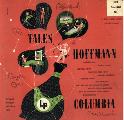 I have several such covers, some of the bulky 78 rpm sets, some from LP sets, my favorite being the colorful one from the London "Tale of the Tsar Saltan" in which a very colorful be-turbaned gentleman is smiling out at you. Of one particular artist who designed covers mostly for Columbia 78s and LPs I will have much to say later in this mini-series. Here I wish only to talk of the philosophy of artwork to attract purchasers of recorded music.