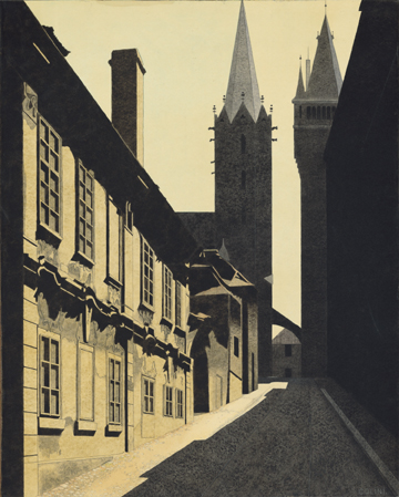 Vojen Cech Colini is a surrealist, quite possibly the oldest, living surrealist. Just months away from his 80th birthday, Colini continues to paint in a style that is considered by some to be an artistic anachronism. "I paint what I like. I never left what I liked." The artist sits at a small, round table in his home in Clark Summit, Pennsylvania digging through a box of sketches and early paintings. "I was very young when I started painting innocent and naïve." He pulls out a small, breathtaking image. The jeweled tone of the uniform worn by the single figure in the foreground literally glows. It is one of Colinis first. "I didnt know much about the 15th century," he says, holding the image in front of him. "But I loved it." Then he laughs and adds, "This is not bad." Colini was born in 1924, only 17 years before the surrealist movement was declared dead. The day Nazi tanks rolled into the town square of Colin, Czechoslovakia, the13-year-old boy was sent to Lucerne to study. There, Colini began a life-long love affair with art. His summers were spent in the churches and museums of small towns in Italy where he fell under the spell of Renaissance painters. In his late teens, Colini traveled to Paris. Surrealism was at its peak. There, he enjoyed the company of such masters as Rene Magritte and Max Ernst but it was the images of Giorgio de Chirico, another surrealist, which captured the young painters eye. Drawn to the contrast between light and shadow, the strange perspectives and bizarre environments that were de Chiricos signature, Colini began to marry the surrealist vision of the fantastic with his other love, 15th century renaissance art. He even adopted the medium of tempera as his own. "Tempera gives you absolute control, the plasticity of dark and light," Colini holds up a painting. "You can do things with tempera you cant do with oils. With oils, you have not as much finesse, no control" Painting with oils is difficult; painting with tempera is close to impossible. Unlike oil painting, where layers of paint add depth and contour to images, tempera paintings gain depth in both field and color by the deft mixing, application and layering of egg glazes. A single color on a finished painting could take as many as 6 different glazes to achieve. It was the colors that tempera made possible that really fired Colinis imagination. "The paintings of the masters glowed such strong colors and so beautiful," his voice carries you with him to the museums and galleries of Italy. "They have been dead for 500 years but when you see their paintings, you can see, hold, understand what life and the artists were like." The colors in Colinis paintings glow as well, lit from within. The clarity and high gloss of the images almost fool the eye into thinking they are photographs. But there is no place on earth where you could photograph the images that fill Colinis paintings.