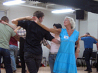 Ogata began his dancing career by taking ballroom lessons, but in the last two and half years he has become increasingly involved in swing dancing and Lindy Hop. Mr. Ogata told me how difficult he found it to progress beyond the basics in ballroom; for him, the swing world provided more opportunity for creativity and socialization. The more romantic atmosphere of ballroom dancing can also be challenging for a single dancer, and many studios encourage dancers to enroll as a couple. At the West Coast Swing intensive, young people danced with older people (some into their 60’s and 70’s), and the few brave female leaders led other women in their dances. The rotation system employed by Royston in his lessons ensures that every follower will get a chance to dance with every leader, allowing them to adapt to varying heights and skill levels. Sean Ryan of Bridgewater, New Jersey explained to me how limiting – and ineffective – it can be to learn with just one partner; the constant alternation of dancers prevents newcomers from adopting the bad habits of their significant other, and allows them to identify their own mistakes before focusing on how to correct them. Several others pointed out to me that West Coast Swing is a great dance for both singles and couples: in a couple, the dancers learn how to adjust their movements to match new techniques and styles; both singles and couples get a chance to form an expanded social network.